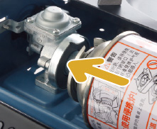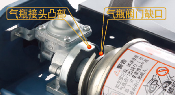 • 装上新气瓶,如没有新气瓶时,请把取出的气瓶用水冷却,如不冷却,会再次脱落;