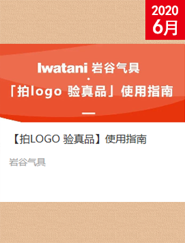 岩谷气具为用户推出【拍LOGO.验真品】产品信息识别系统,使消费者可以随时随地识别产品信息,瞬间验真品。 有效的产品信息识别系统,仅包括品牌官方微信公众号,其他任何方式、网页、工具等均非官网认可渠道,为确保产品识别信息准确,请在官方指定渠道进行识别验证