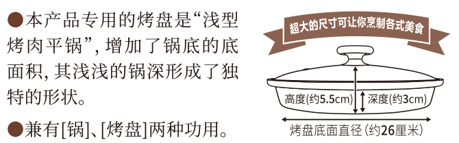 | 适用锅具:锅底直径24cm以下,不可覆盖侧盖 (岩谷便携炉专用炊具不受此限,请按说明书使用) |