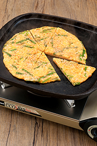 热锅后倒油。将面糊呈圆形倒入锅中煎大概3-4分钟,反面相同。